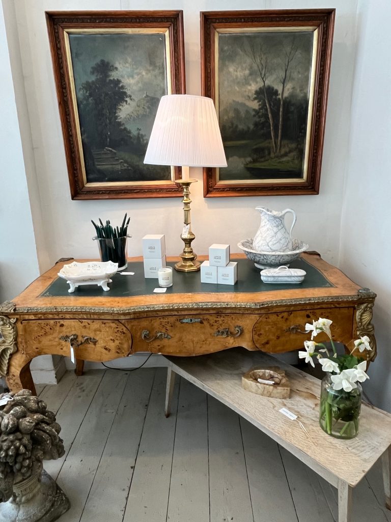 1930’s shelved wall cupboard in original grey paint 95cm by 60cm by 30cm – £225